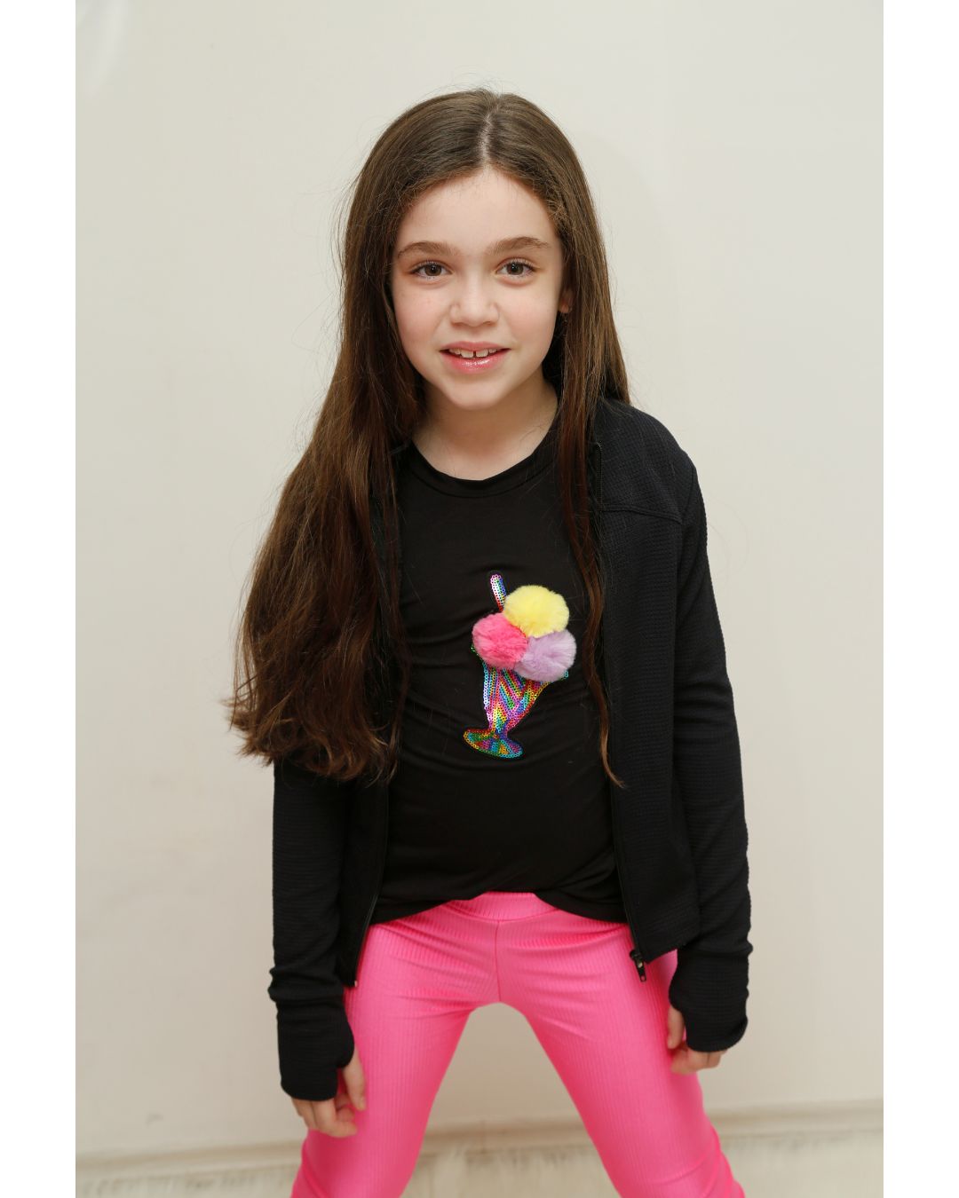 Casaco esportivo feito em poliamida e elastano, com zíper frontal. Possui punho com abertura para encaixar o polegar, do jeitinho que as meninas gostam. É uma peça leve, macia e que dá liberdade de movimentos para todas as brincadeiras e atividades.