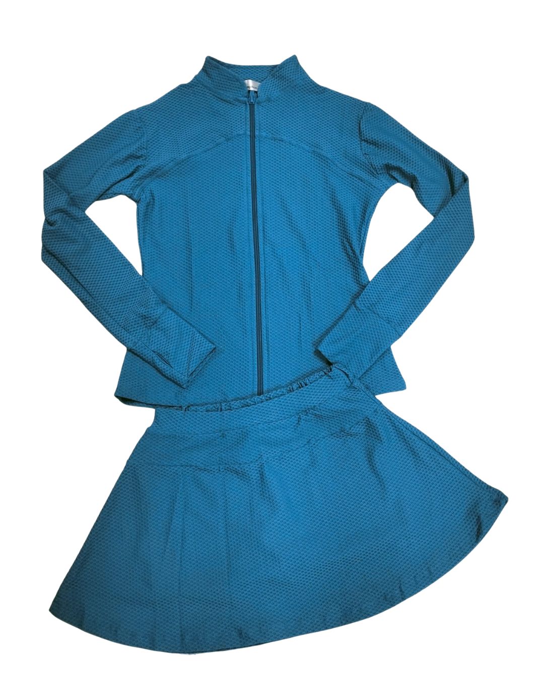 Conjunto composto por casaco esportivo e shorts saia, ambos feitos em suplex light. O casaco possui zíper frontal e punho com abertura para encaixar o polegar, do jeitinho que as meninas gostam. O shorts saia possui um shortinho costurado embaixo da saia, que proporciona muito conforto e segurança para as meninas brincarem à vontade. É um conjunto leve, macio e que dá liberdade de movimentos para todas as brincadeiras e atividades. Composição 92%poliamida(Tecido Leve,Resistente e Fácil Lavagem) 8% Elastano(Tecido flexível)