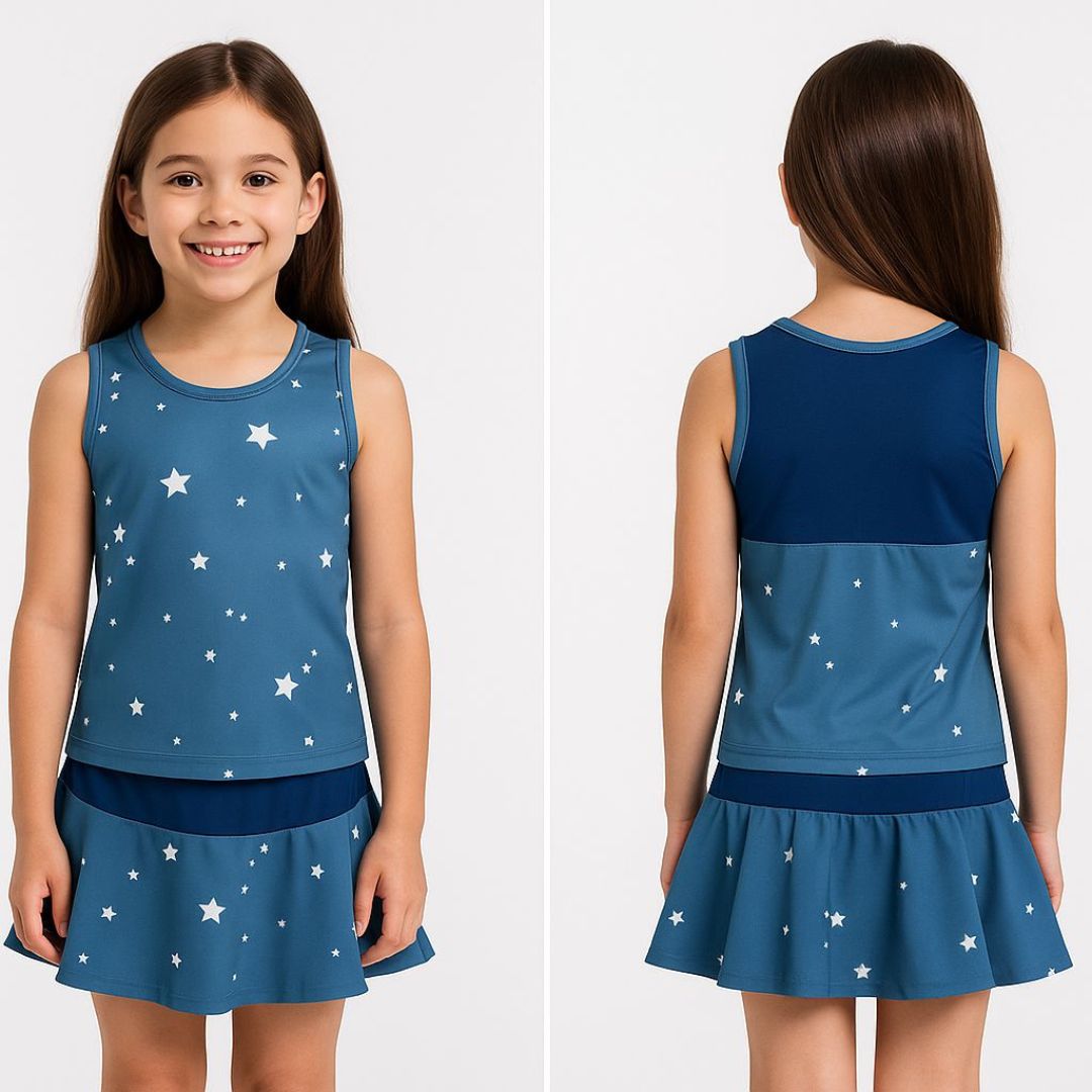Conjunto desenvolvido em fluyti ,toque geladinho muito macio e maleável, composto por regata e shorts saia. A regata possui recorte nas costas com detalhe em tecido telado, na mesma cor do tecido da peça, dando um efeito muito moderno e descolado. O shorts saia possui shortinho costurado embaixo da saia, proporcionando muito conforto e liberdade de movimentos, além de um lindo detalhe em tecido telado que confere muito charme à peça.