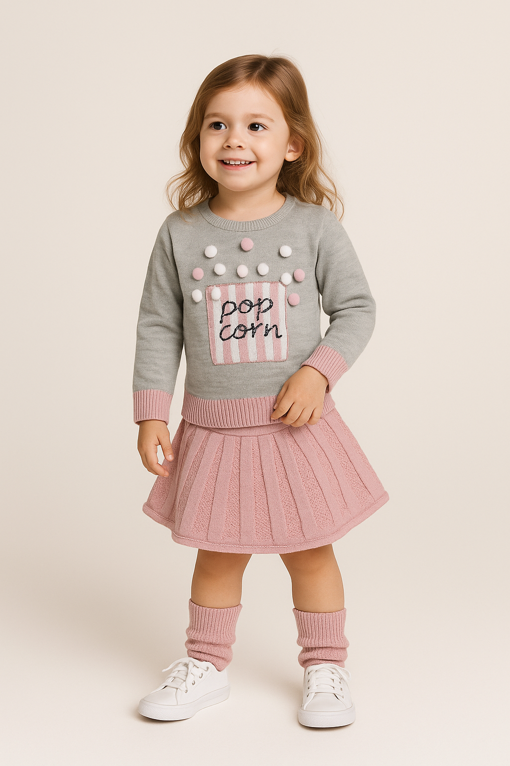 Nossa coleção de inverno conta com essa fofura!! Blusa confeccionada em Tricô nas cores cinza e cor de rosa que formam uma combinação perfeita para compor looks lindos ,e para completar possui pom pons coloridos que deixa a peça divertida e alegre como toda criança!!